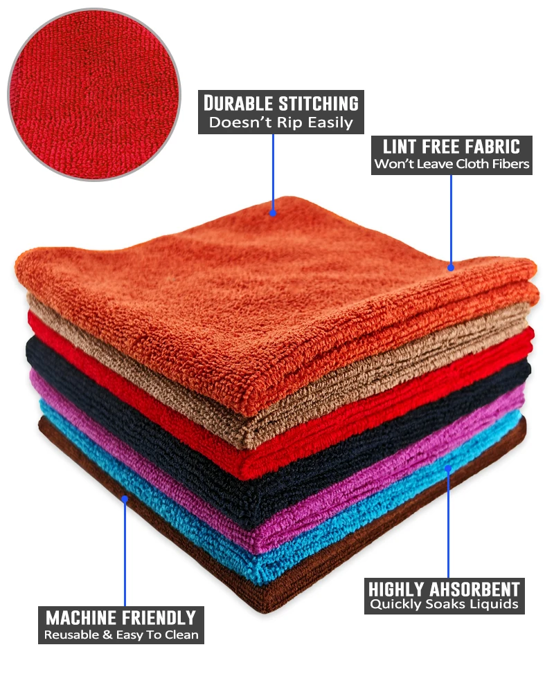 Microfiber towels are ultra-soft and scratch-free making them ideal for car detailing. A pack of 50 towels, warp knit to ensure long-lasting. They absorb water, do not leave any residue and can be used multiple times. Ideal for window cleaning, washing dishes and other brittle surfaces. Can be personalized with a brand name or logo. Love the way they shine!